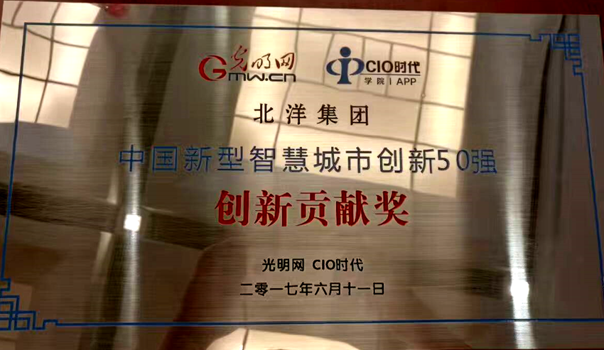 6月11日,第十一届中国电子政务高峰论坛暨“2017中国新型智慧城市创新50强”发布会在北京大学中关新园召开。威海北洋集团在众多参评企业中脱颖而出,荣获“2017中国新型智慧城市创新50强创新贡献奖”。