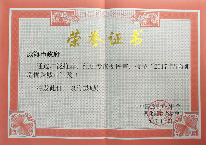 11月7日,2017世界互联网工业大会在青岛举办,市经信委组织三角轮胎、三进船业、天力电源等企业参会。威海市荣获“2017智能制造优秀城市”奖。